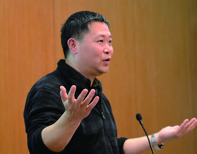 2017年12月18日,视觉传达设计学院以“设计之维”为主题的学术活动月系列交流活动第四场讲座举行。主讲嘉宾是来自江南大学的吴建军老师。吴建军是江南大学设计学院视觉传达设计系副教授、硕士研究生导师、数字媒体与多维视觉设计工作室主任。他知识渊博,学术视野开阔,研究广泛,主要研究方向有视觉传达设计、古籍文献书籍装帧形式及敦煌雕版印刷文献研究。视觉传达设计学院副院长侯立平教授主持了本次讲座。