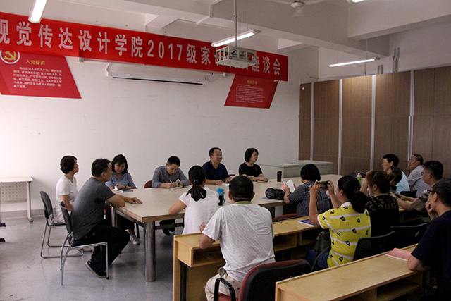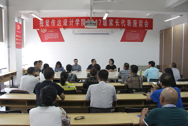 吴书记对新生家长表示热烈的欢迎以及衷心的祝贺。吴书记简要介绍了学院的发展历史、师资力量、办学规模及发展前景,让新生家长对视觉传达设计学院的基本情况有一定的了解。张瑞老师用最近亲身经历告诉家长们,学生在学院学习,老师都会用心对待每一位同学,在他们迷茫的时候给他们指导、鼓励,用自己的专业知识、技能来培养学生,让家长放心。王刚老师说,学生的优秀与学校的教育离不开家长的配合,大学是一个全新的开始,希望父母与孩子多沟通,能够支持孩子的选择。紧接着吴书记就学生的心理健康、自我约束等方面的问题与家长讨论,表示有效的沟通是对学生教育的前提,希望家长与老师多与学生沟通,共同培养学生的良好习惯,提高学生综合素质。