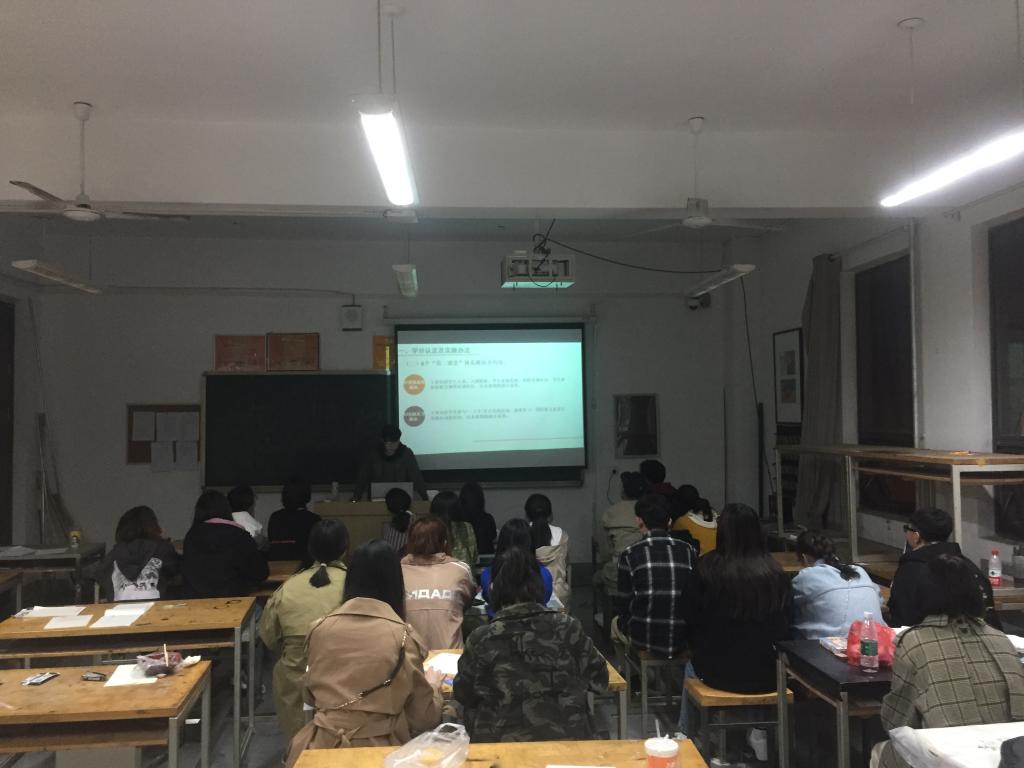 各班团支书首先向大家介绍了“第二课堂”开展的重要意义。“第二课堂”充分体现在校大学生的业余时间安排,是学生日常评优评奖、推优入党的重要依据;随后又向同学们介绍了“第二课堂成绩单”的课程体系与内容。“第二课堂”共包括8个模块,分别是:思想成长、实践实习、创新创业、志愿工艺、文体活动、工作履历、技能特长以及其他方面。“第二课堂”课程设置为4个学分,其中创新创业模块不低于2学分,其他板块合计不低于2学分;最后,各班各团支书进一步强调了“第二课堂”在丰富同学们课外生活,提高自身综合素质和服务学校人才培养工作方面所发挥的重要作用。