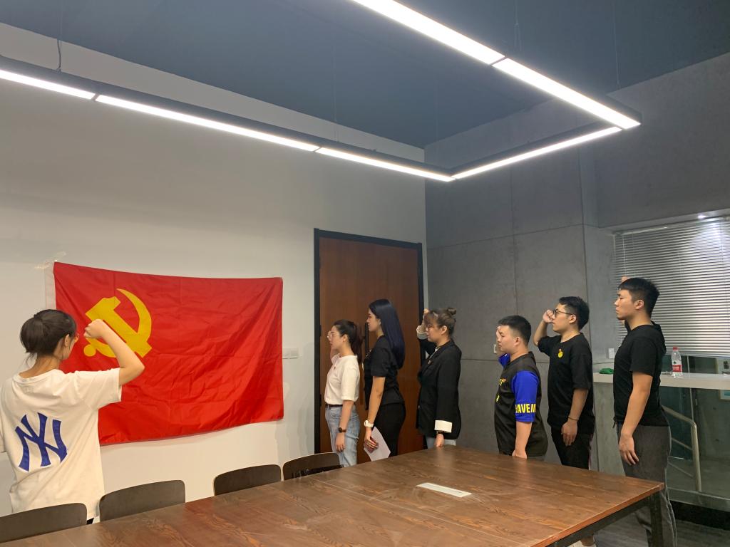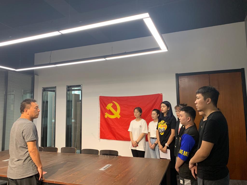 在雄壮的《国际歌》后,主持人陈瑶代表党组织向张颖等7名同志表示祝贺,祝贺他们成为党组织的一员,为党组织带来了新鲜血液。《中国共产党章程》规定,新党员必须面向党旗进行入党宣誓,这是最实际、最生动的党的观念教育,也是党员政治生命开始的象征。誓词概括了党对党员的要求,也概括了党员对党组织和党的事业的责任。