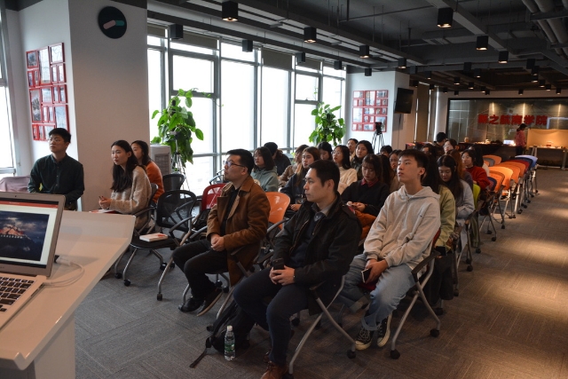 之后全体师生与设计师们在会议室展开互动交流分享。首先,新之航策划经理从品牌公司实际作业案例入手,通过深入浅出的方式向他们讲解了商业品牌打造项目从初始介入、项目调研、策略规划,到创意方式、设计理念、沟通技巧等项目作业过程。通过对具体案例的系统展示,让他们在创作过程中,能够换位思考去理解项目,进而激发创意灵感,做出最适合作品。此后,刘经理与一线设计师和他们就专业学习态度,创意行业认知,日常案例积累,个人学习成长等多个方面进行了热烈的沟通交流。