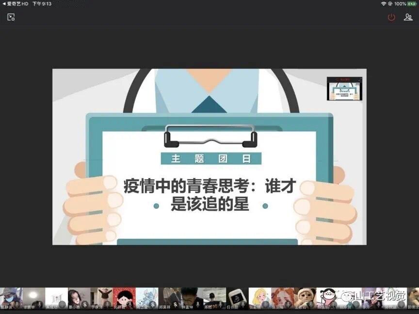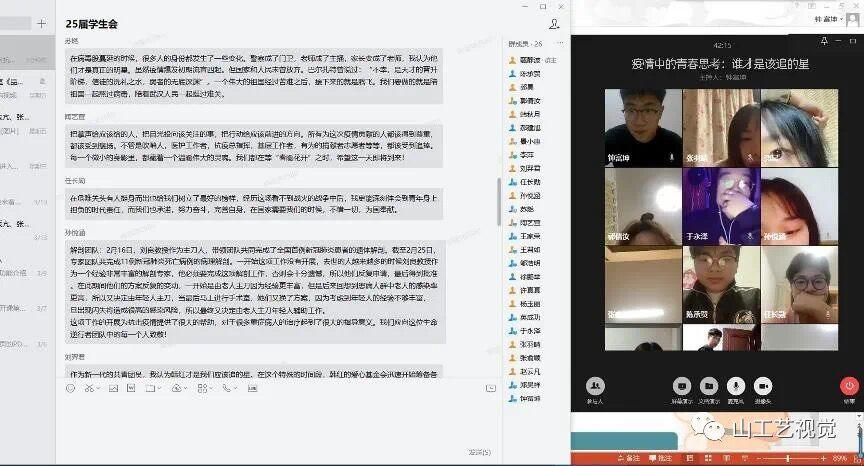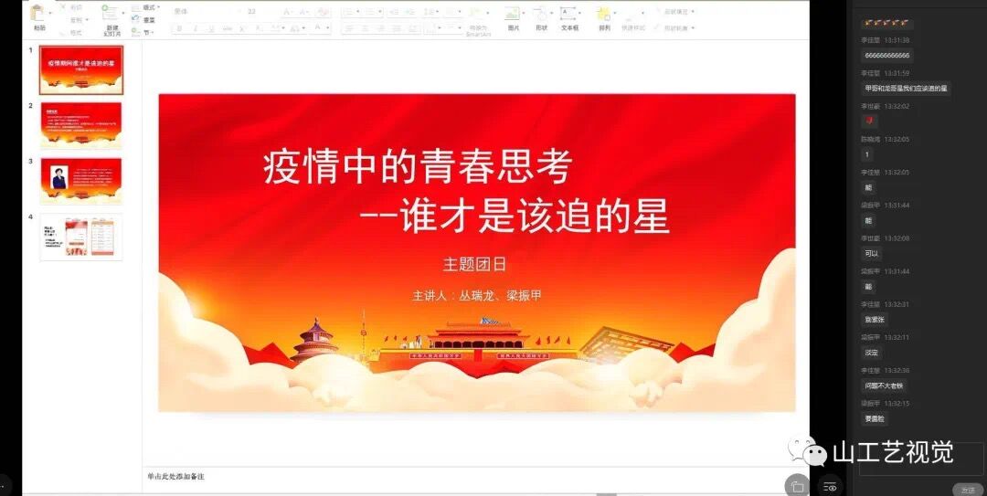 2020年3月22日,视觉传达设计学院线上开展了“疫情中的青春思考:谁才是最该追的星”主题团日活动。各年级团支部通过企业微信APP,QQ班级群等线上平台,结合本次主题开展了主题团日活动,运用视频、语音和文字的方式展开热烈讨论,本次活动由各班团支书主持,全体共青团员积极参加。