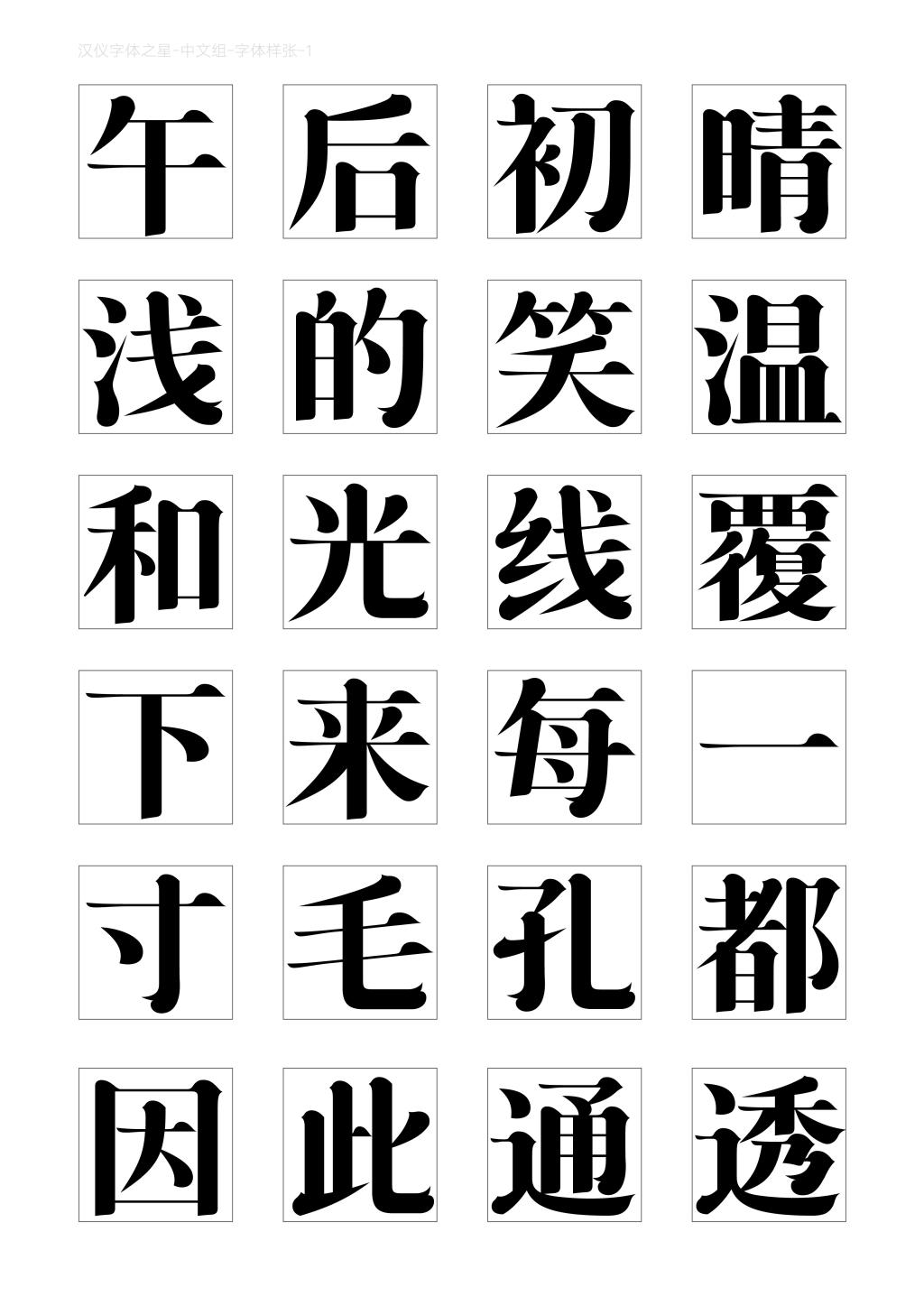 鸟海修(二等奖):这是一款超细的长体宋体字。其修长而美丽的骨架形态给人一种风度优雅而清净的感觉。一个一个的笔形都经过认真考虑和整理,给人以好感。要是再提高要求,可能再稍微把数码感削弱一点会更好。