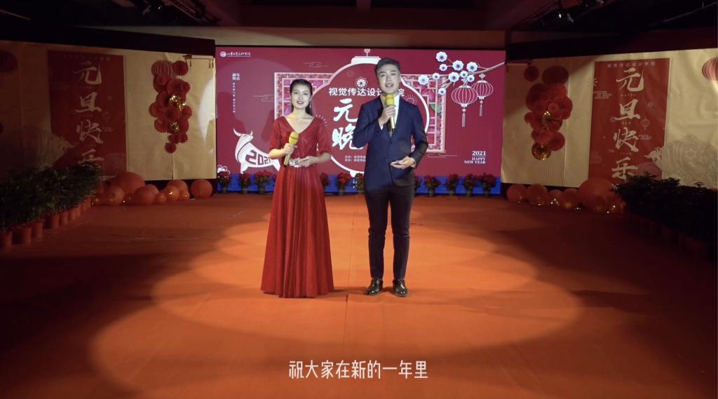 2020年1月1日晚,由视觉传达设计学院团总支主办,视觉传达设计学院学生会承办的“众安丰年乐金牛喜迎春”2021年线上元旦晚会隆重举办。为遵守防控要求,减少人员聚集,本次晚会为全程录播,视觉传达设计学院全体学生于各班教室观看了本次线上元旦晚会。