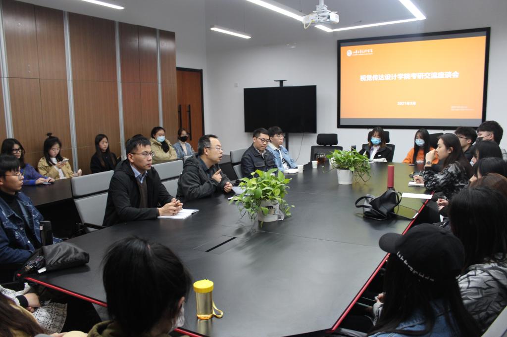 为更好地帮助同学们解决考研路上的种种问题,发挥优秀学生的“传帮带”作用,视觉传达设计学院于2021年3月11日在三楼会议室举行了考研交流座谈会。此次座谈会邀请了2017级胡严谨和刘畅两位优秀学生代表进行考研经验分享。视觉传达设计学院党总支书记吴焕文,辅导员王敏以及2018级、19级部分同学参加。