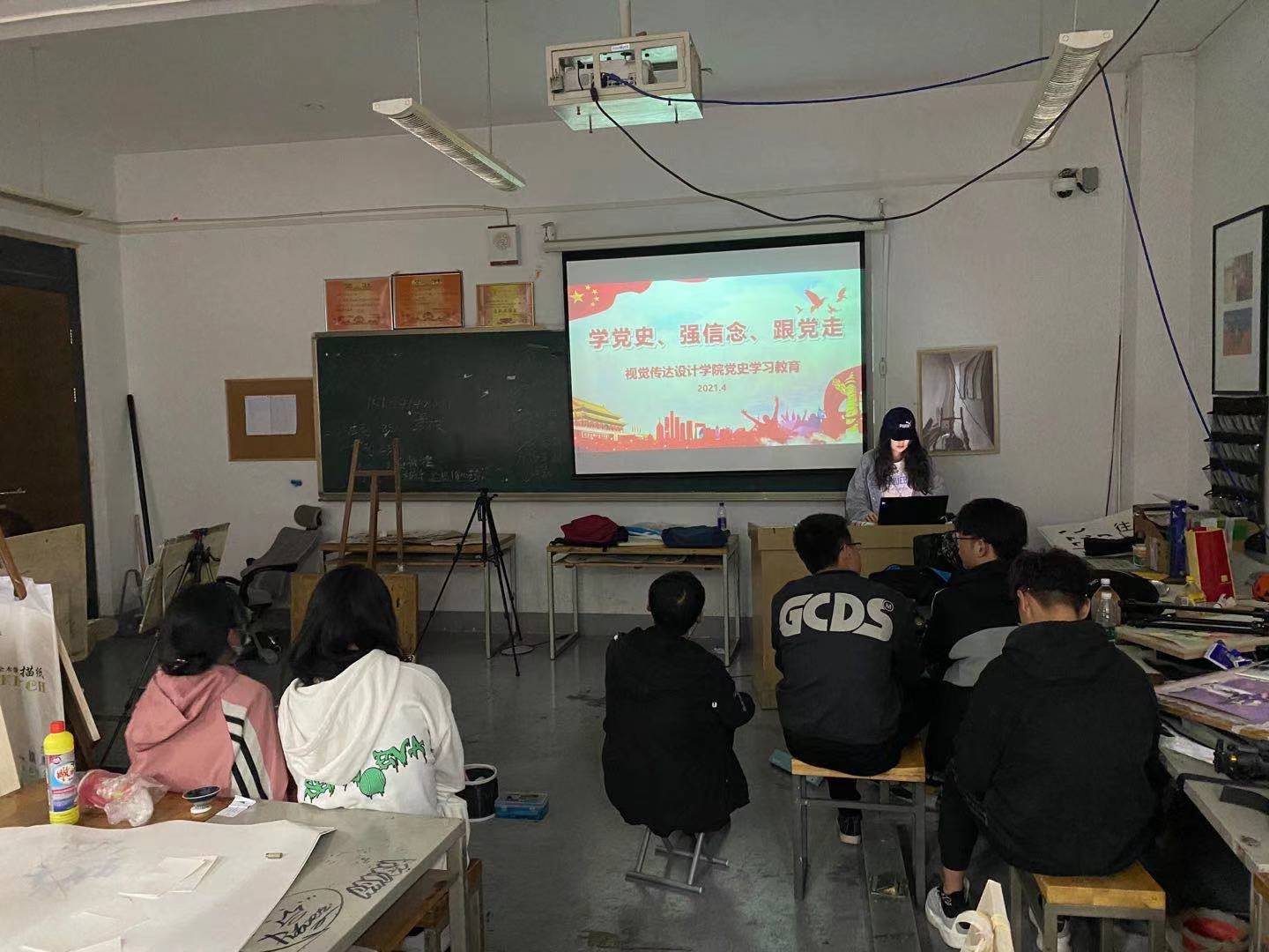 2021年4月6日晚,视觉传达设计学院各团支部举行“学党史、强信念、跟党走”党史学习教育第一次集中学习。