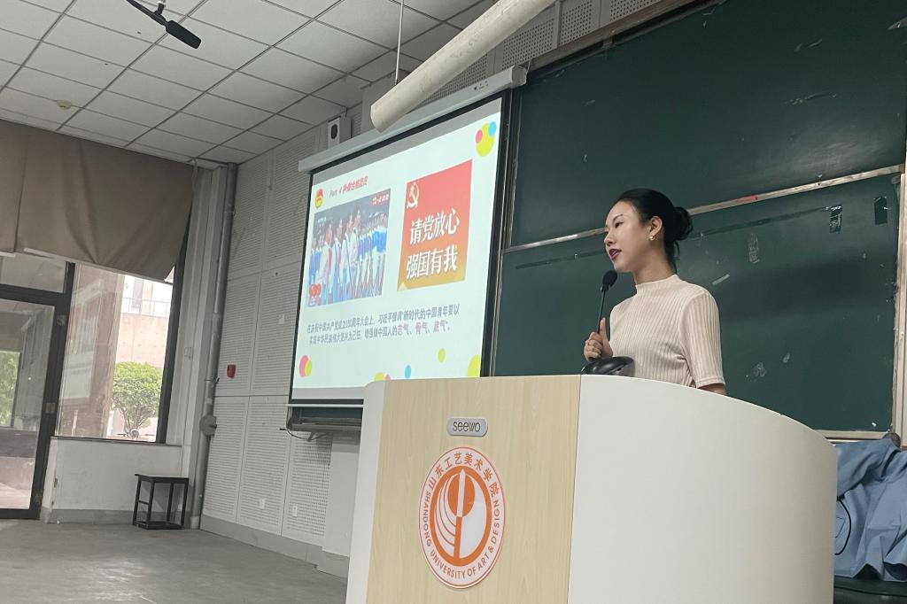 根据学校团委工作安排,2021年9月18日下午,视觉传达设计学院在长清校区综合楼第五合堂开展新学期开展新学期“请党放心,强国有我”共青团第一课。本次团课面向学院2021级新生,由视觉传达设计学院团总支副书记陈瑶主讲。
