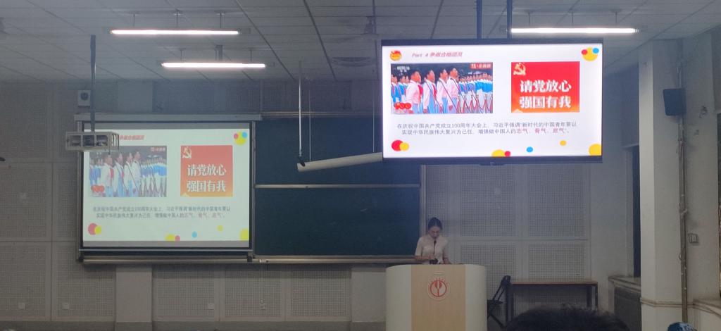 本次团课分四个部分。首先,陈老师带大家了解了团的基本知识,包括团的象征、团的初心、共青团“三会两制一课”的基本制度。此后,老师与大家简单回顾了共青团的历史,介绍了共青团发展的三个阶段和“五四运动”、“一二九运动”两个重大历史事件及其深远影响。结合学院团总支工作,老师向大家展示了我院青年、团员在团的建设、志愿服务、社会实践、文体活动等方面取得的成绩。结合青年思想引领工作,陈老师带大家重点学习了习近平总书记在庆祝中国共产党成立100周年大会上的讲话。她特别指出,“未来属于青年,希望寄予青年。”这是总书记的殷切期盼。“请党放心,强国有我!”这是当代青年的庄严宣告。