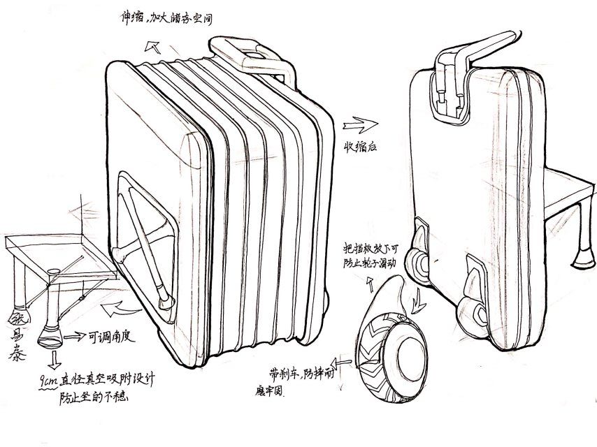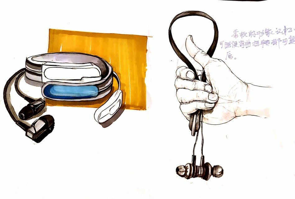 方案构思的过程就是运用产品造型方法创造新产品的造型与功能,并以手绘草图的形式表现出来,着重展现造型方法的运用与效果表现能力。该部分的表现训练包括手绘草图、精致马克笔效果图和AI三视效果图,也是对《设计二维表现》《设计基础一》课程知识点的实践运用与能力巩固。