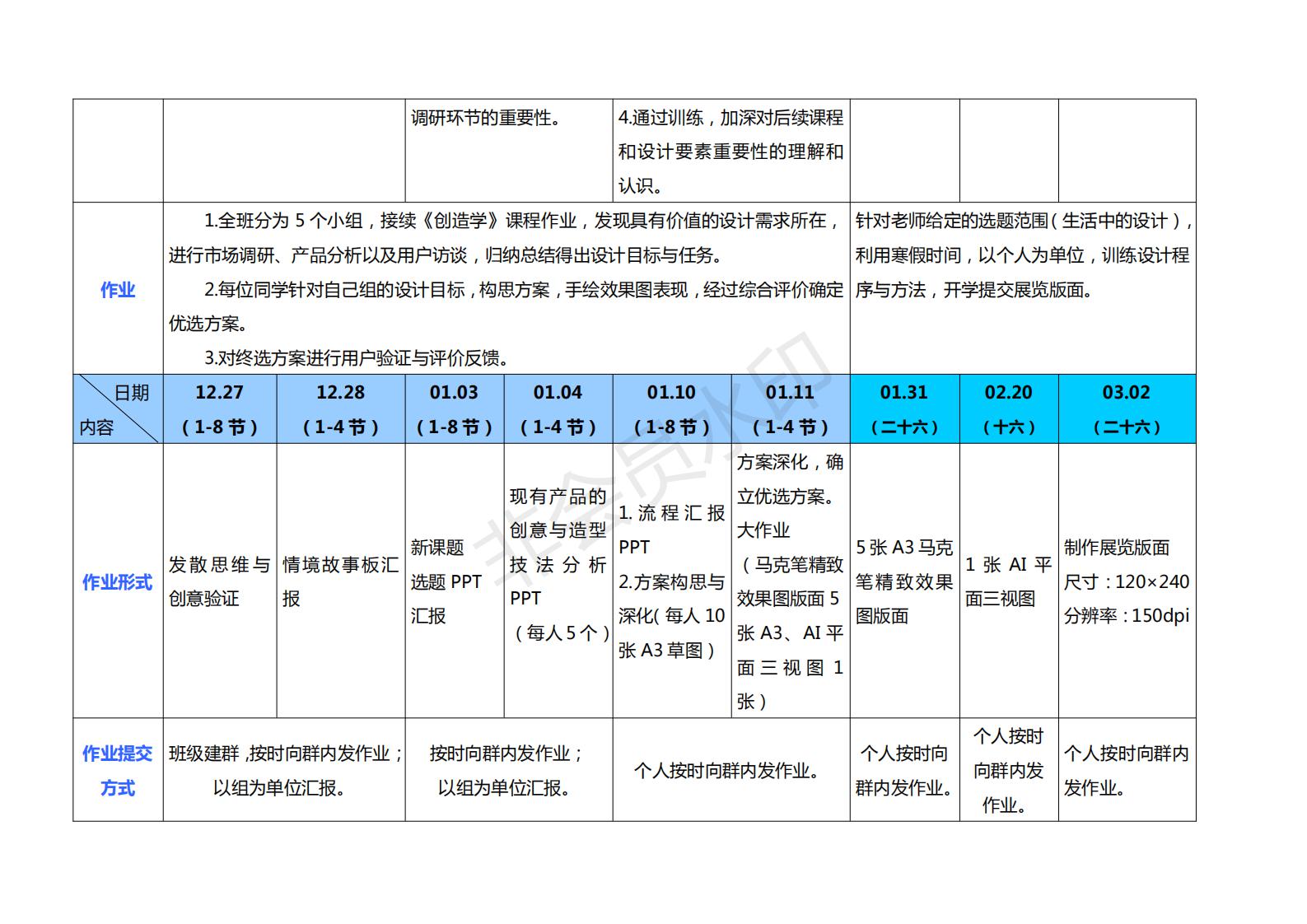 本次《设计程序与方法》课程教学,是该课程自工业设计学院学分制改革后,按照新的教学计划和教学大纲为大一新生进行的第一轮授课。课程负责人张公明老师同其他授课老师继续采用工业设计学院“教师集体备课、同步上课、统一考试、集体评价”的教学新模式,认真集体备课,更新研讨教学内容,统一规范作业要求与形式。由于本课程处于学期最后三周,课时相对紧张,所以课程组创新性地提出“课堂教学+假期训练”的综合考核评价方式,将丰富的课程知识教学与大量的能力训练战线拉长,充分利用寒假课余时间,定点、定量、定质完成相关能力训练与作业,极大地巩固了该课程知识,也充分利用了“3+7”周的教学时长无缝链接了第二学期的基础课程学习。