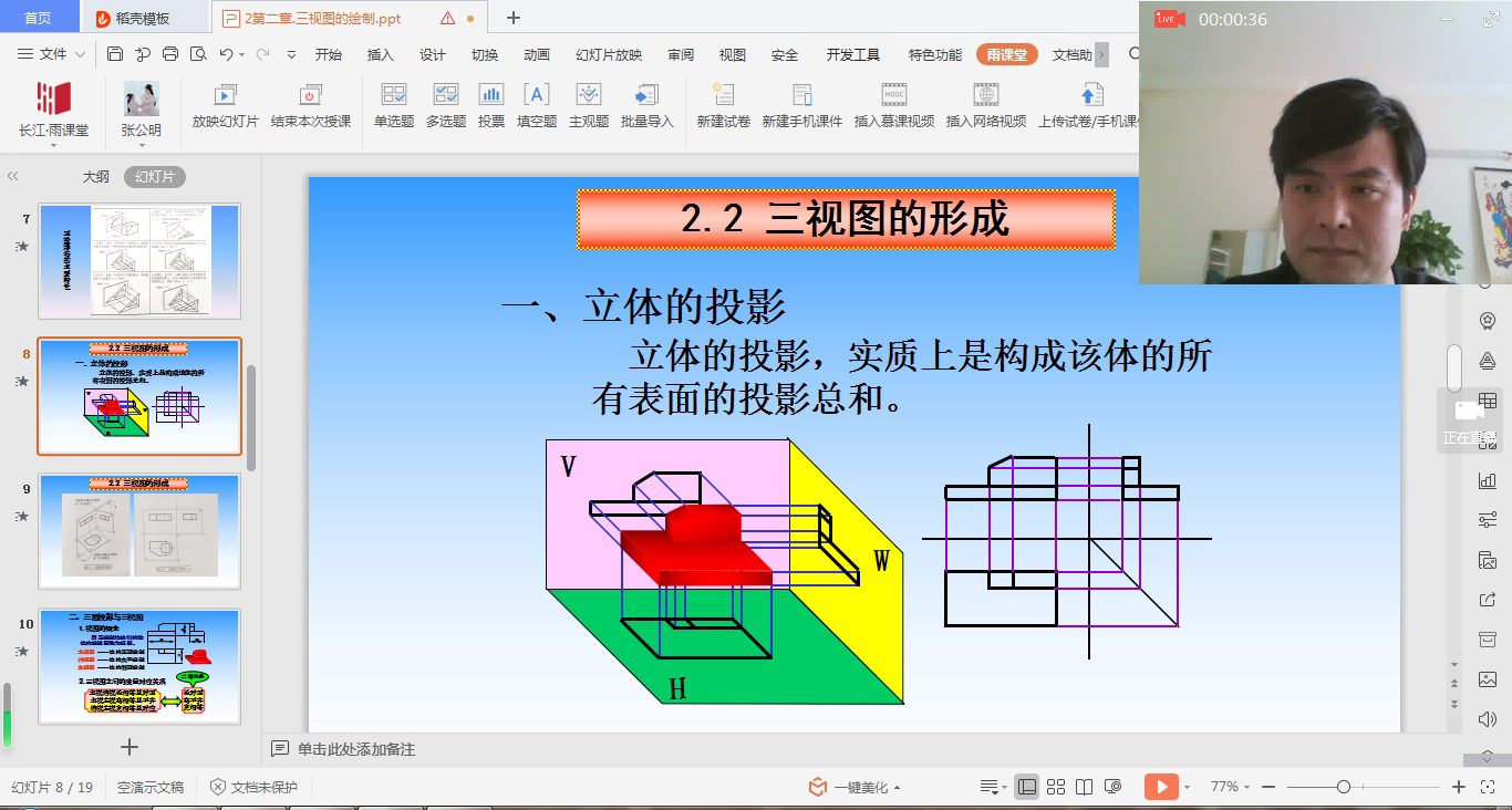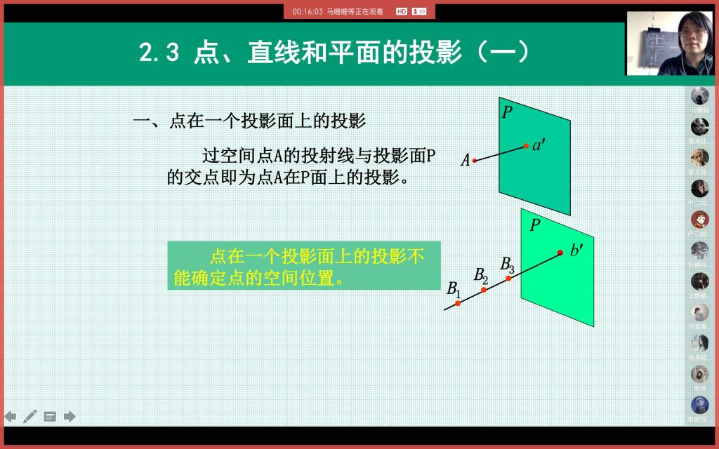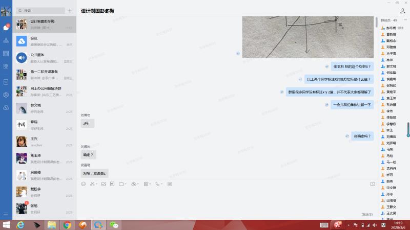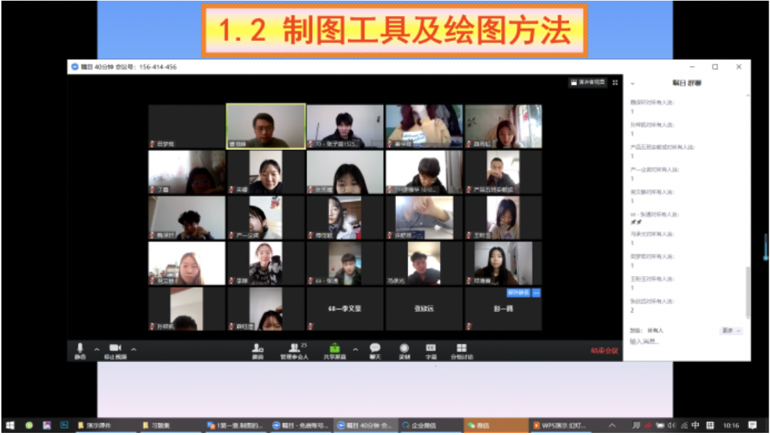 设计制图课程是一门专业基础课程,任课老师针对设计制图课程知识点多、习题量大,学生在学习过程会出现理解能力差异性的问题,通过微信、QQ视频、瞩目视频直播的方式,将PPT课件投屏共享,结合语音讲解,搭建现场小课堂环境示范绘图步骤并使用摄像头展现,课堂互动过程效果理想。教师通过PPT发布习题,学生在规定时间内将完成习题拍照传到QQ群中,教师再进行习题点评,有效帮助全体同学跟上课程节奏。
