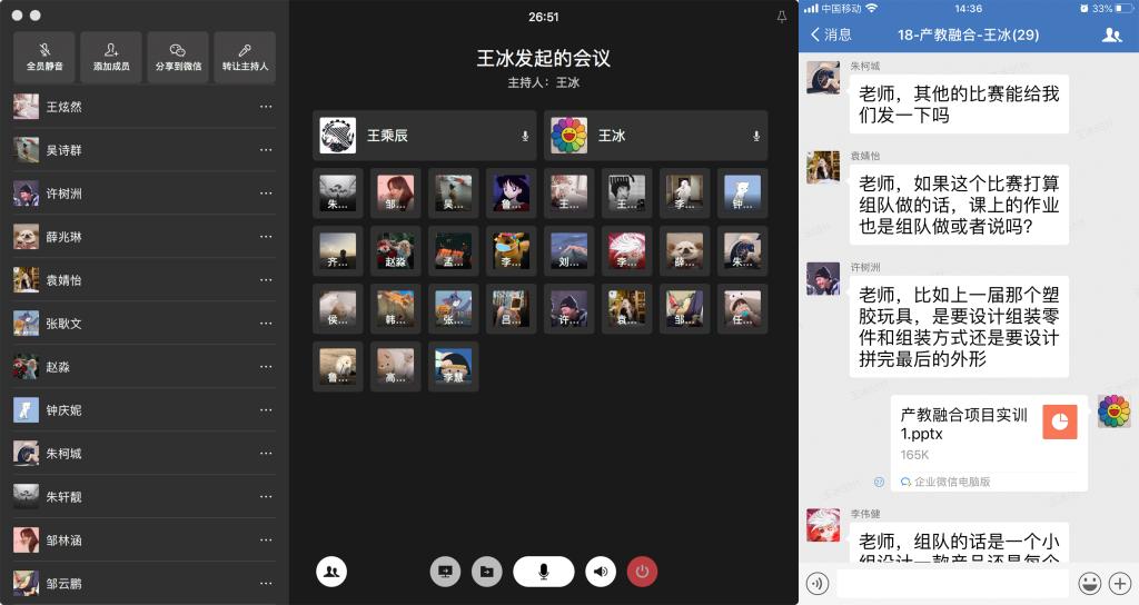 产教融合项目实训1课程是一门综合实践课程,授课老师针对实践课程远程设计辅导困难等问题,线上教学采用瞩目app视频会议、长江雨课堂+企业微信在线会议等灵活教学方法,系统讲解设计目标选择、设计调研、功能原型等知识点,配合丰富的设计案例,深入讲解设计实践流程,同时与学生语音互动,教学反馈较好。通过企业微信小组,课后师生资料共享,设计讨论、答疑顺畅。
