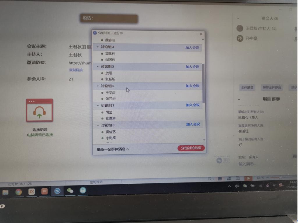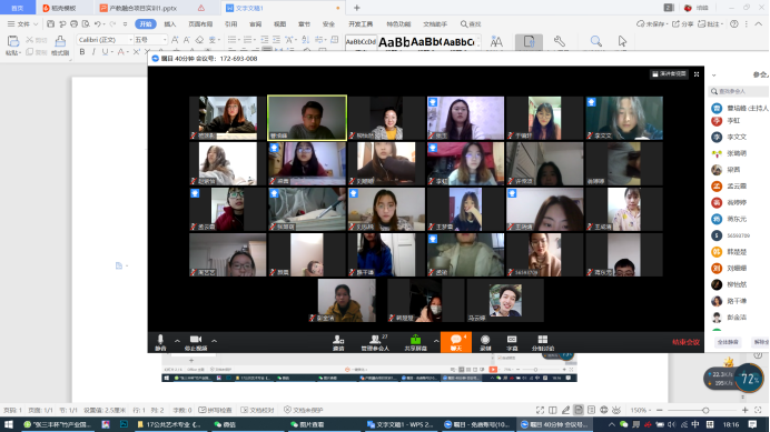在线上教学过程中,教师们授课思路清晰,深入浅出,重点突出;教学课件制作规范,教学应用效果较好;严格按教学计划进行授课;对学生要求严格,课堂秩序良好;任课教师认真组织学生线上分组讨论与指导,并进行课外辅导;学生参与讨论度较高。同时,教师们以多种方式进行考勤,严格检查学生出勤率,关注学生的课堂体验,积极利用在线视频、微信群等网络工具与学生进行在线互动,在线提问及答疑,关注学生上课的状态与学习体验,学习成果较好,学生参与热情较高。