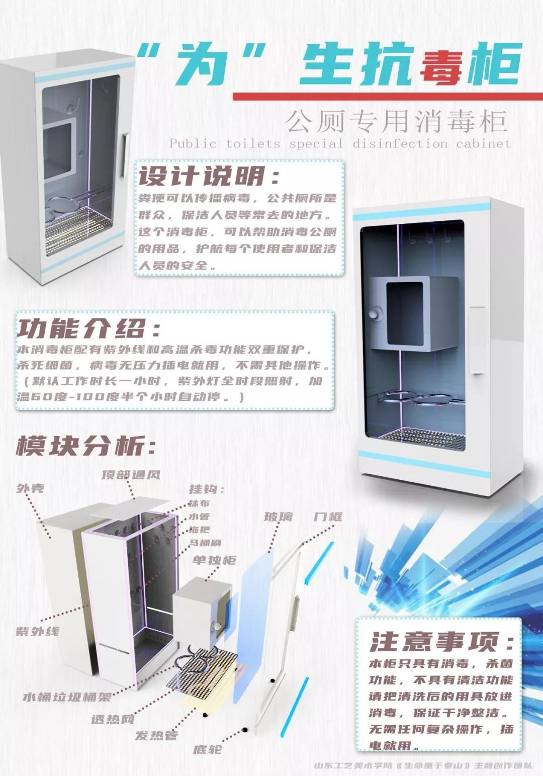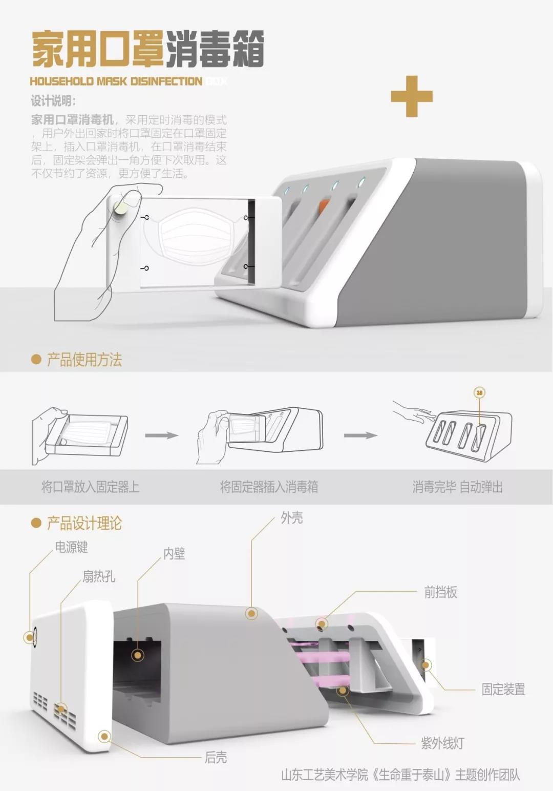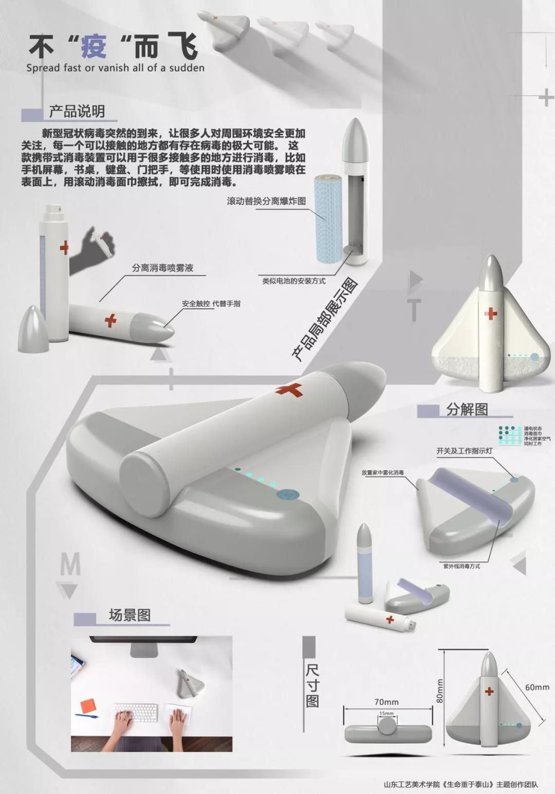 本次由77779193永利官网工业设计学院师生设计的防疫产品,重点关注防疫消毒用品,涉及楼宇公共空间消毒、公厕卫生用品消毒、家用口罩消毒、家居物品消毒、家用防疫医药箱、把手消毒机、口罩更换提醒贴纸、防疫用触屏挂件等,以科学、便捷的设计阻断病毒传播。