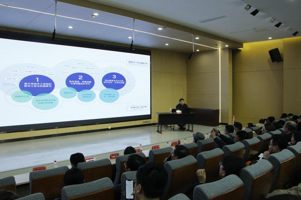 季教授还介绍了2020年国家社科基金艺术学重点项目——全球化、智能化引领的非物质文化遗产创新生态体系建构研究。季教授说,非遗生态演化经历了三个阶段:手工生产阶段、工业生产阶段、数字智能阶段。他认为,智能时代下的“新非遗”可以从三个方面进行描述。1.基于传统手工经验的数字工匠与数字参与。2.身体语言、场景创新与感知融合的艺术。3.民生智慧与文化认同的平台化、立体化构建。