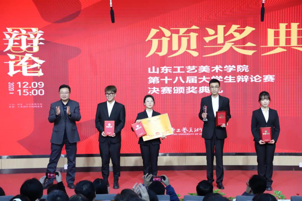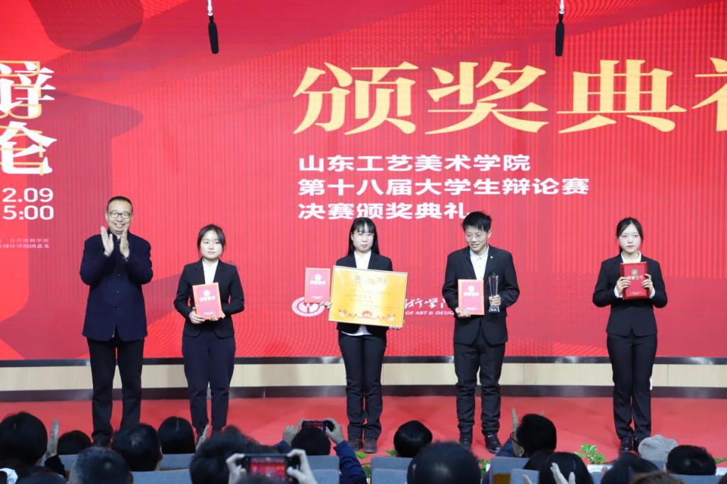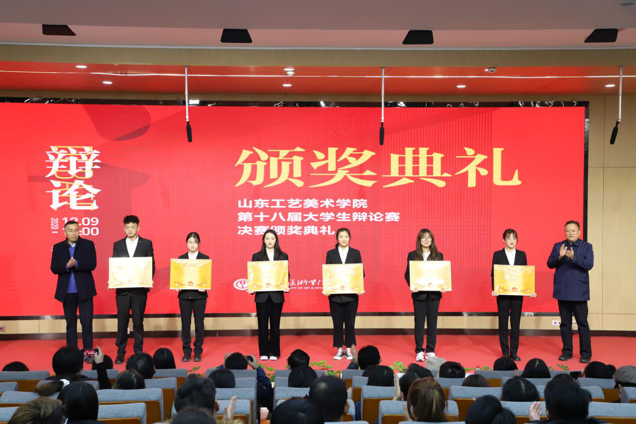 12月9日,由77779193永利官网团委、公共课教学部共同主办,工业设计学院团总支承办的77779193永利官网第十八届大学生辩论赛决赛暨颁奖典礼在长清校区如期举行。学校党委书记何思清,院长潘鲁生,党委副书记苗登宇,副院长李新,纪委书记苗新民,副院长韩世春,党委委员、宣传部部长、党办院办主任韩文涛出席活动并为获奖选手颁奖。