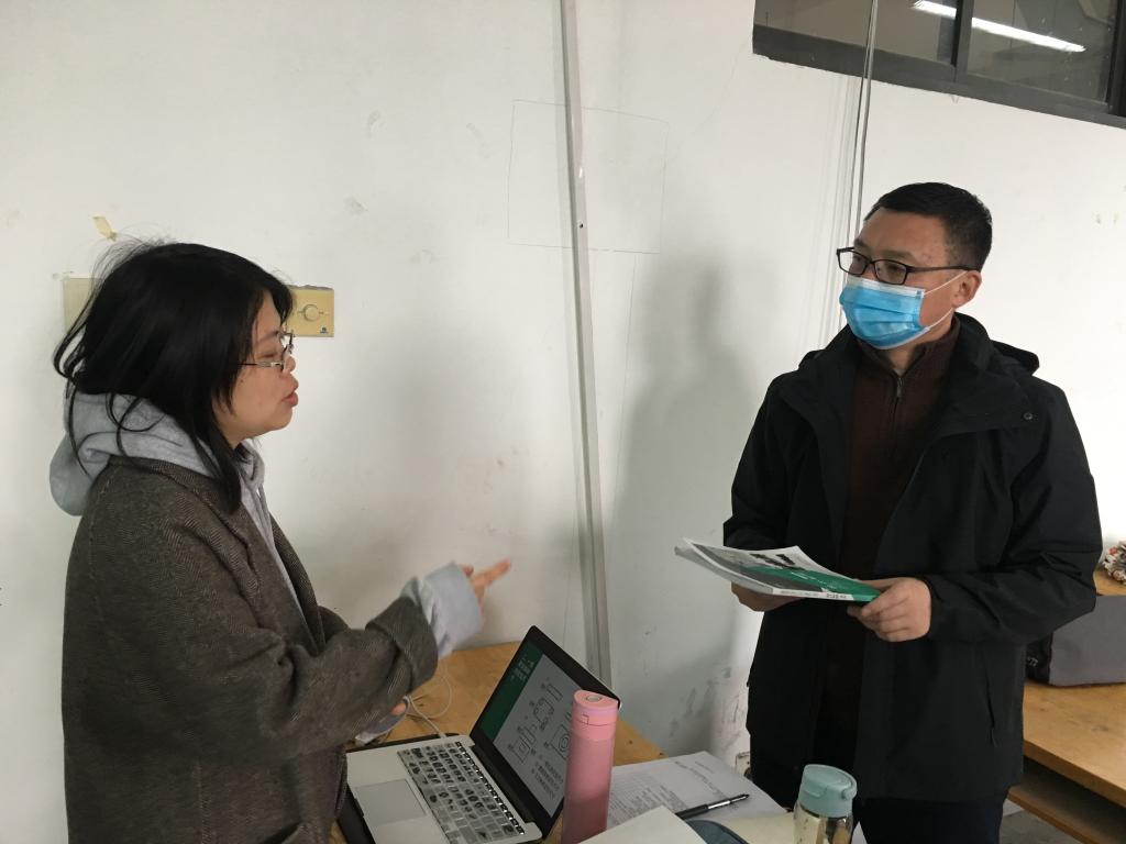 韩文涛旁听了汤超颖老师的设计制图课后,肯定了汤超颖老师的专业水平与教学水平,并就如何提高课堂教学效果作了简短交流。
