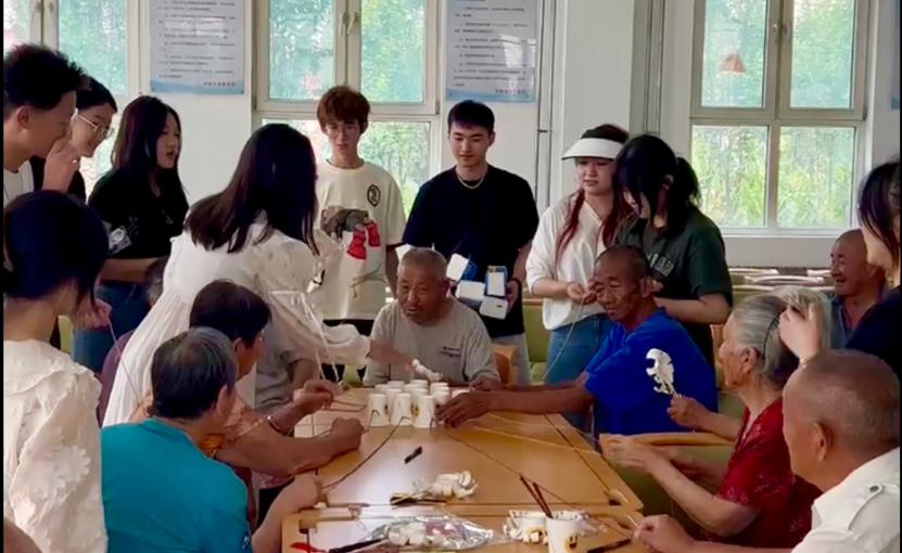 为弘扬中华民族敬老爱老的传统美德,积极营造全社会关注老年人的良好氛围,暑假期间,造型艺术学院2022级绘画一班启航社会实践服务队全体成员走进济南市济阳区孙耿敬老院,以“传承红色基因,尊老敬老献爱心”为主题,结合所学专业特长,开展公益展演、走访调研以及传统手工艺术制作等活动。