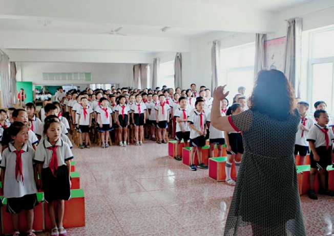 在活动的最后,黄美玉老师带着孩子们一起齐唱校歌--《飞向明天》,孩子们笔直的身姿,美妙的歌声,黄老师慈爱的目光,优雅的指挥让在场每一位师生都为之动容。