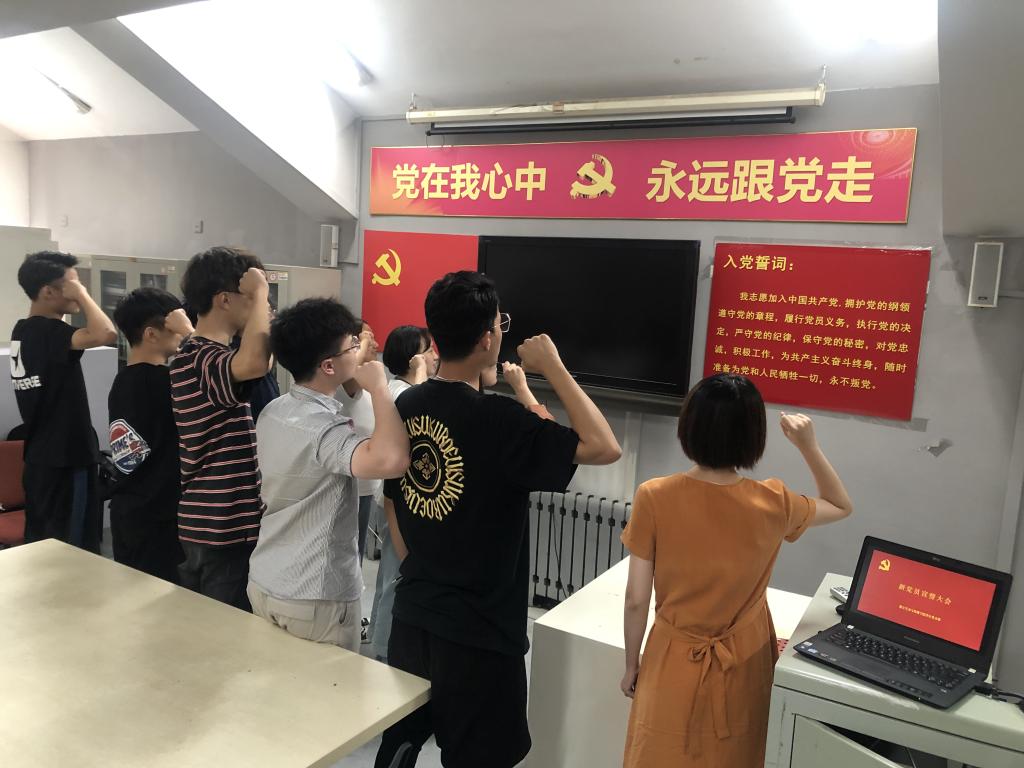 2019年9月4日下午,数字艺术与传媒学院学生党支部在综合楼四楼B446会议室举行新发展党员入党宣誓大会,学生第一党支部书记李灿主持。