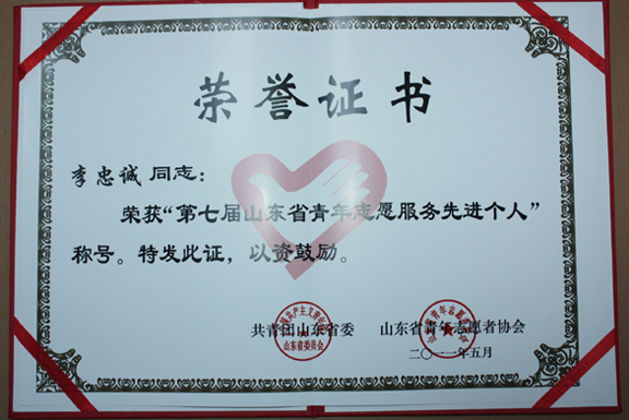 本次评选中,永利官网青年志愿者协会荣获“第七届山东省青年志愿服务先进集体”称号;李忠诚、宫鑫(女)荣获“第七届山东省青年志愿服务先进个人”称号。