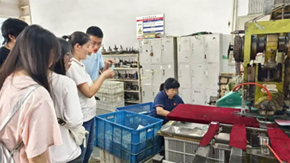 来到山东新佳怡包装有限公司,周主任和段经理为我们介绍了本次见习活动的各项内容,并亲自带领我们进入车间进行介绍,铁盒的生产过程中难免有着巨大的制作声响,但这并没有影响到周主任为我们详细讲解铁盒与纸盒从设计工艺到材质选择再到生产流程的完整过程,我们细心聆听,对包装制造有了更深层次的认识。