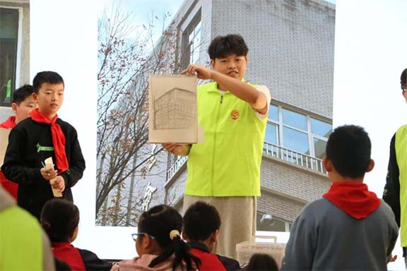 本次活动分为两个部分:一是“大手拉小手”。志愿者通过图片、视频等二维的平面等方式,将孩子的视角带入建筑,通过不同的角度去发现建筑独有的空间设计,带动孩子们更多的体验。二是“大手托小手”。志愿者与孩子深入互动讲述三维视角,以孩子独立创作为主,志愿者为辅的教学方式,让孩子自主创新完成作品。