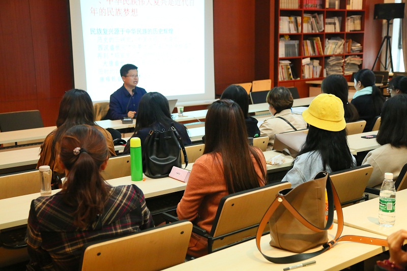 时教授首先通过对中国古代社会发展历程的讲述,强调了回顾历史的重要性,以及从历史发展规律中展望未来的研究视角;其次,时教授对于中共一大召开、红军长征、平型关大捷、开国大典和十一届三中全会召开等诸多重要历史事件的生动讲述,将中国共产党的发展历史沿着时间轴线作了系统的梳理,带领同学们重温了党在各个历史阶段发挥的重要作用;最后,时教授希望同学们在对党史的学习中,坚定中华民族伟大复兴的理想,不忘初心,继续前进。