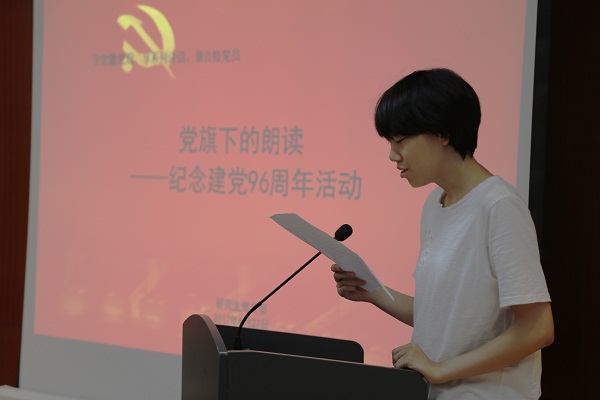 为庆祝建党96周年,同时扎实开展“两学一做”学习教育,营造浓郁的校园文化氛围,激发爱国爱党热情,坚定永远跟党走的政治信念,研究生党支部于6月27日在永利官网长清校区研究生学术活动室开展以“党旗下的朗读”为主题的庆祝建党96周年活动。全体研究生党员参加了本次活动。