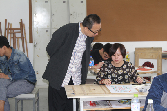 潘鲁生院长首先听取了现代手工艺术学院杨睿老师为2014级漆艺4班学生讲授的《漆艺简史与鉴赏》课程,该课程3周,48学时,2学分。该课程通过讲授中国漆艺简史,对漆艺的产生、发展、各个历史时期的髹饰技法作系统地介绍,理清我国漆工艺的历史脉络,把握主要时期、主要地区的漆艺发展状况,了解漆器制作的整个工艺过程,使同学们了解漆材料的历史价值。在课程交流中,潘鲁生指出,该课程是漆艺专业方向理论必修课,在课程体系中具有比较重要的作用。现代手工艺体现了手工技艺、手工文化内在的发展规律,传统手工艺的造物思想、价值理念、审美原则、技艺特征、材料之美、功能尺度、传承方式,对现代手工艺乃至现代设计艺术都具有重要的参照与启示意义。工艺美术各个专业方向的教师都应加强手工艺专门史的教学研究,结合专业培养目标,从史料梳理的角度分析传统造物的设计理念、传统工艺形态和图案纹样,引导学生进行设计与生活方式及社会文化发展之间的关系思考,把握现代手工艺发展的内在规律。