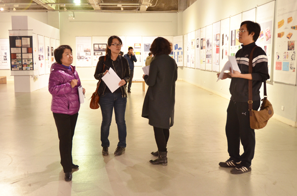 毕业设计是对学院本科人才培养四年最终成果的完整展示和重要表现。视觉传达设计学院十分重视毕业班的教学工作,为规范毕业班教学管理,充分体现视觉传达设计学院专业教学特点,研究制定了《视觉传达设计学院量化考核及过程管理办法》。根据《管理办法》的相关要求和进度安排,视觉传达设计学院2014届毕业设计中期汇报展在美术馆如期举行。2014届230名毕业生全部参加了本次毕业中期汇报展。本次汇报展分广告设计、出版设计、品牌设计、包装设计四个专业方向和包装工程专业同时进行,各专业方向成立包括指导教师在内的毕业设计评议小组,对学生的设计逐一进行面对面审核。汇报展上,首先由学生通过口头陈述汇报设计思路和创作,阐述设计选题的目的和意义,由教师组成的评议组针对学生毕业设计中存在的问题进行点评指导,最终确定毕业设计的修改方向,提出修改意见,评定相应分数,并计入毕业设计阶段性成绩,之后学院教学委员会将会对中期汇报结果作最后审核。