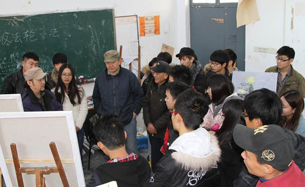 2013年11月27日上午,永利官网老教授协会成员赵德昌教授、丁庆平教授来到长清校区教学楼听取了造型艺术学院刘宁老师为2012级油画班讲授的《油画静物写生》课程。
