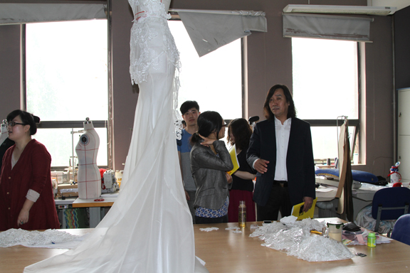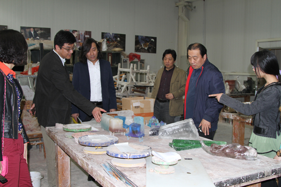 汇报会后,副院长苗登宇带领教务处及各教学单位负责人,到各教学单位实地查看了毕业设计作品的实物制作情况。