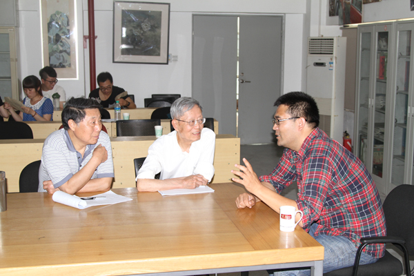 听课结束后丁永源、李成良两位老教授和刘文健老师交流
