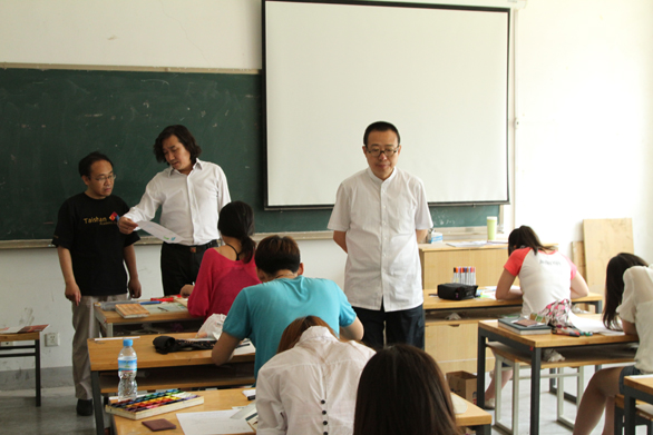 学校领导高度重视此次转专业考试工作,对考试出题、阅卷等各环节都提出了明确要求。考试期间院长潘鲁生,副院长苗登宇在教务处处长董占军,教务处副处长、招生办公室主任王霞的陪同下,到考试现场巡视,并对监考人员提出相关要求。考试现场秩序井然。