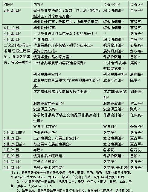 三、展览工作安排表: