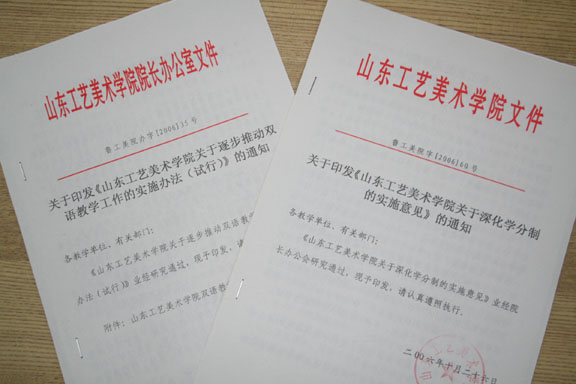 2、学分制教学计划完善与修订工作。2006年5月份,教务处组织各学院教学骨干力量,在历年修订教学计划的基础上,针对教学过程中出现的新情况、新问题,结合当前学科发展的新特点,对2006级教学计划进行了系统修订,并对2006级教学计划和教学大纲进行了集中规范和装订,使之更能体现永利官网“科学精神、人文素养、艺术创新、技术能力”的办学理念和特点,使学科设置更适应社会发展对人才的需求。在此基础上,教务处征求各方面意见,形成了教学研究和学分制深化的一系列文件,《77779193永利官网关于逐步推动双语教学工作的实施办法(试行)》(鲁工美院办字[2006]35号)、《77779193永利官网关于深化学分制的实施意见》(鲁工美院字[2006]60号)。