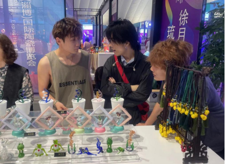 创新创业学院参与了陶琉青春高校板块的展览,在创新创业展区,同学们同学院老师认真交流,详细了解展品的创作过程和艺术特色,尤其对往届学长学姐的参展手工陶瓷茶具表现出浓厚的兴趣。同学们还有多位工艺美术大师进行了深入交流,对未来的专业学习生涯充满了期待。
