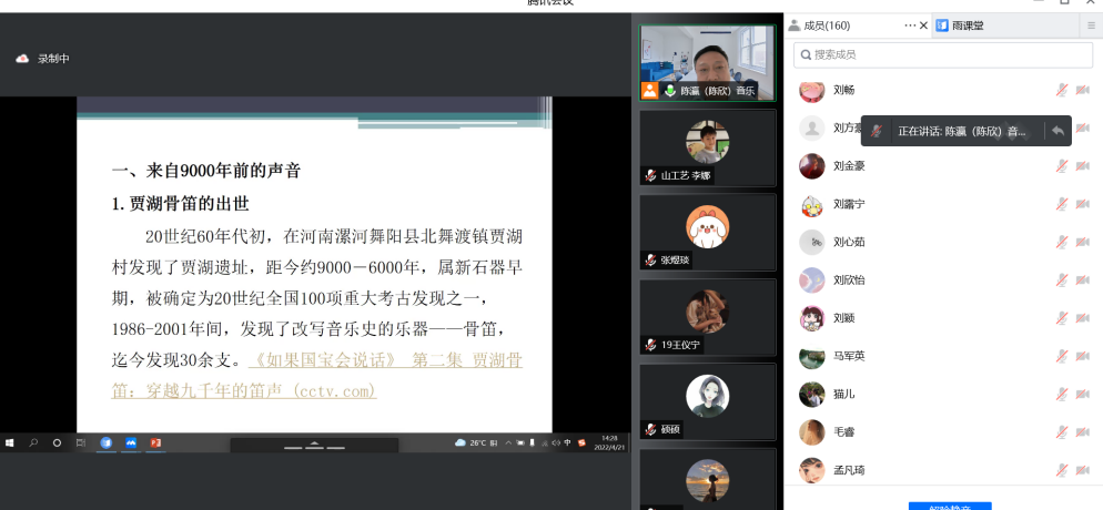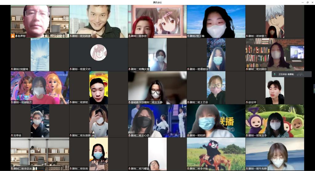 教师杨勇智为雕刻设计班讲授《雕塑》课程,采用腾讯会议直播平台,超星泛雅平台《公共雕塑设计》在线开放课程教学资源。