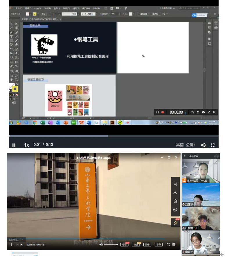 教师宋鲁、王悦、朱姝为影视摄影与制作班讲授《计算机图形与影像》课程,采用腾讯会议直播平台。