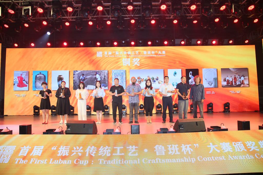 据悉,“鲁班杯”奖杯设计是采用古法琉璃烧制工艺,突出大赛主题“振兴传统工艺”,设计以山为基本形状进行创作,代表组委会组展初心如山峰一样稳固。古法烧制的沉甸甸的奖杯,寓意获奖者在获得荣誉的同时,也能和大赛组委会一起肩负起“振兴传统工艺”的重担。