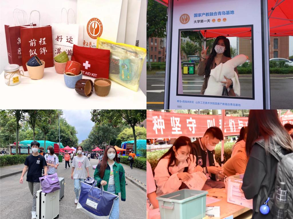 报到现场氛围浓,创意迎新有热度。迎新现场秩序井然,有条不紊。校园里迎新标语鲜亮醒目,热情洋溢;“天工开物 匠心独运”签名墙和“梦想,从这里起航”迎新墙前,吸引了若干新生驻足,签名拍照留念。各单位发挥创新思维,精心准备了创意十足的迎新活动。研究生处赠送图书《如是我思:朱铭自选集》,勉励新生潜心专业,学有所成;视觉传达设计学院搭建“Q版鲁班锁”,展现了“天工开物,匠心独运”的校训精神;建筑与景观设计学院打造“许愿树”,鼓励新生立志、明德、奋进;工业设计学院设立“党员先锋岗”,全方位服务新生开学报到;服装学院设置布料盲盒,希望新生树立专业自信,成长成才;造型艺术学院“写给大学四年后自己的一封信”“网红手牌打卡”等特色活动引来欢声笑语;现代手工艺术学院让新生在陶艺花盆亲手种下向日葵种子,一起见证梦想生根发芽与成长;数字艺术与传媒学院的“特色路牌”和“特色贴纸”惹人眼球,心意满满;人文艺术学院为每位新生定制特色医用口罩和T恤,彰显人文情怀;应用设计学院、基础教学部绘制“成长轨迹”地图,学生从生源地到学校路程连线打卡。产教融合青岛基地迎新工作采用“一对一”全程服务模式,开学前与每一名新生对接,报到当天“一对一”全程服务。整个迎新现场百花齐放,生机盎然,全校师生用爱和温暖为新生准备了一场精彩的创意盛宴。