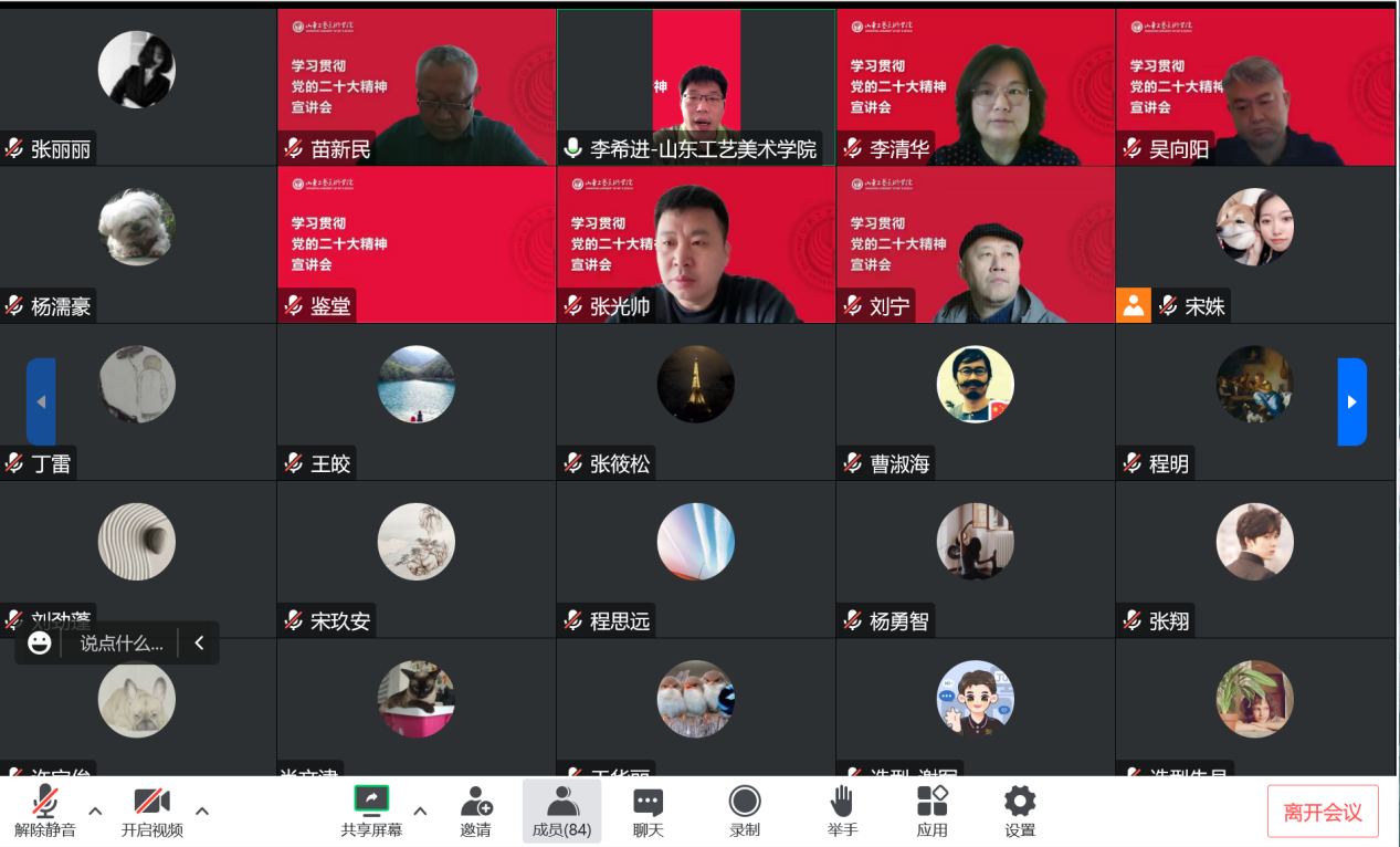 本次宣讲由数字艺术与传媒学院党总支书记李清华主持,造型艺术学院、数字艺术与传媒学院党政领导班子成员、全体教职工以线上形式参加会议。