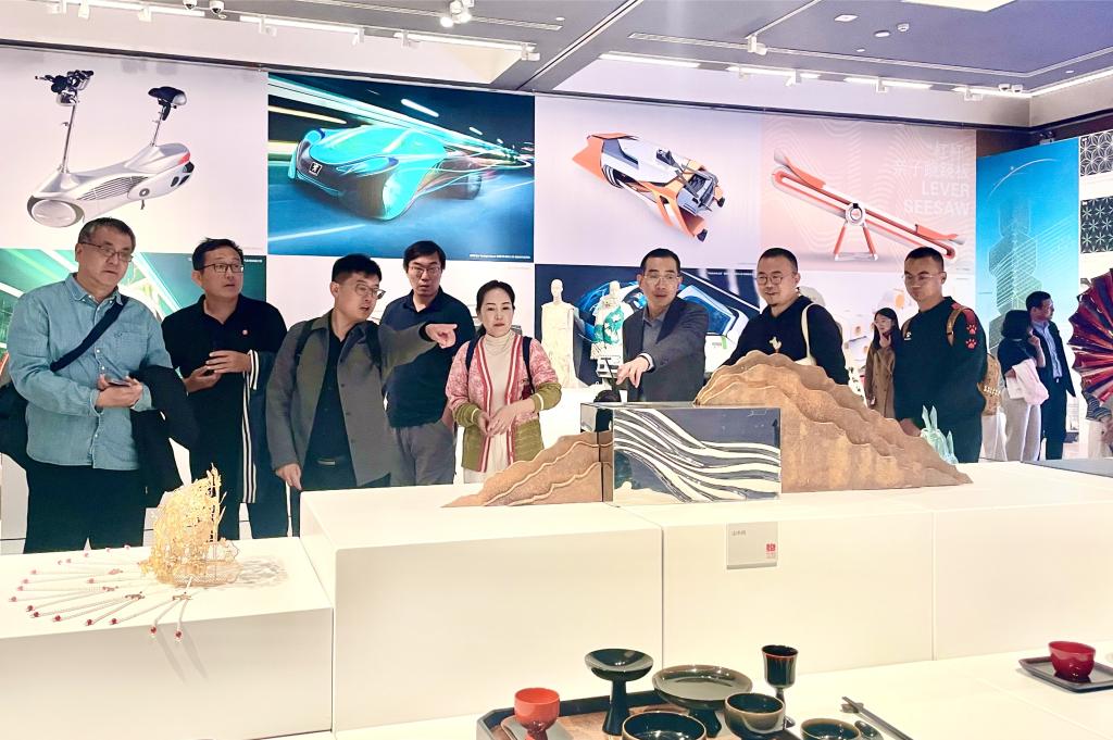 此次活动邀请到现代手工艺术学院副院长惠岩教授担任讲解。参观中,大家认真倾听惠岩教授的讲解,仔细观看每一件作品,认真阅读每一段文字,细细体悟学校发展建设五十年的辉煌历程,深刻感受在学校党委的坚强领导下,学校以“特色求发展”的办学理念和“为人民而设计”的办学成果。