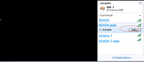 第三步:选择要连接的无感知对应的SSID(本测试案例中选择SDADA-auto),点击连接